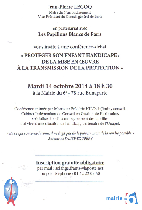 Conférence à Paris 6ème : Protéger son enfant handicapé.