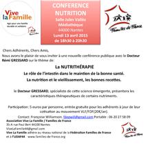 Conférence Nutrition du professeur Remy Gressard à Nantes organisé par la fédération 44 :  La NUTRITHÉRAPIE, Le rôle de l’intestin dans le maintien de la bonne santé.